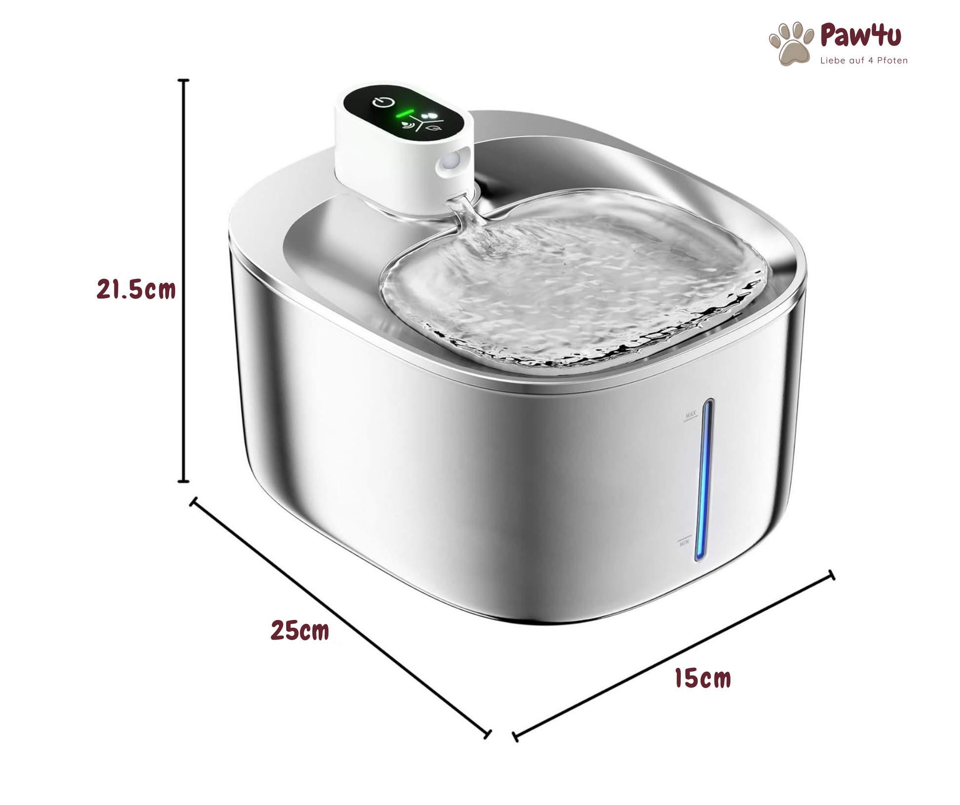 Kleinere Hunde können ihn ebenfalls nutzen, solange die Wassermenge für sie ausreicht.