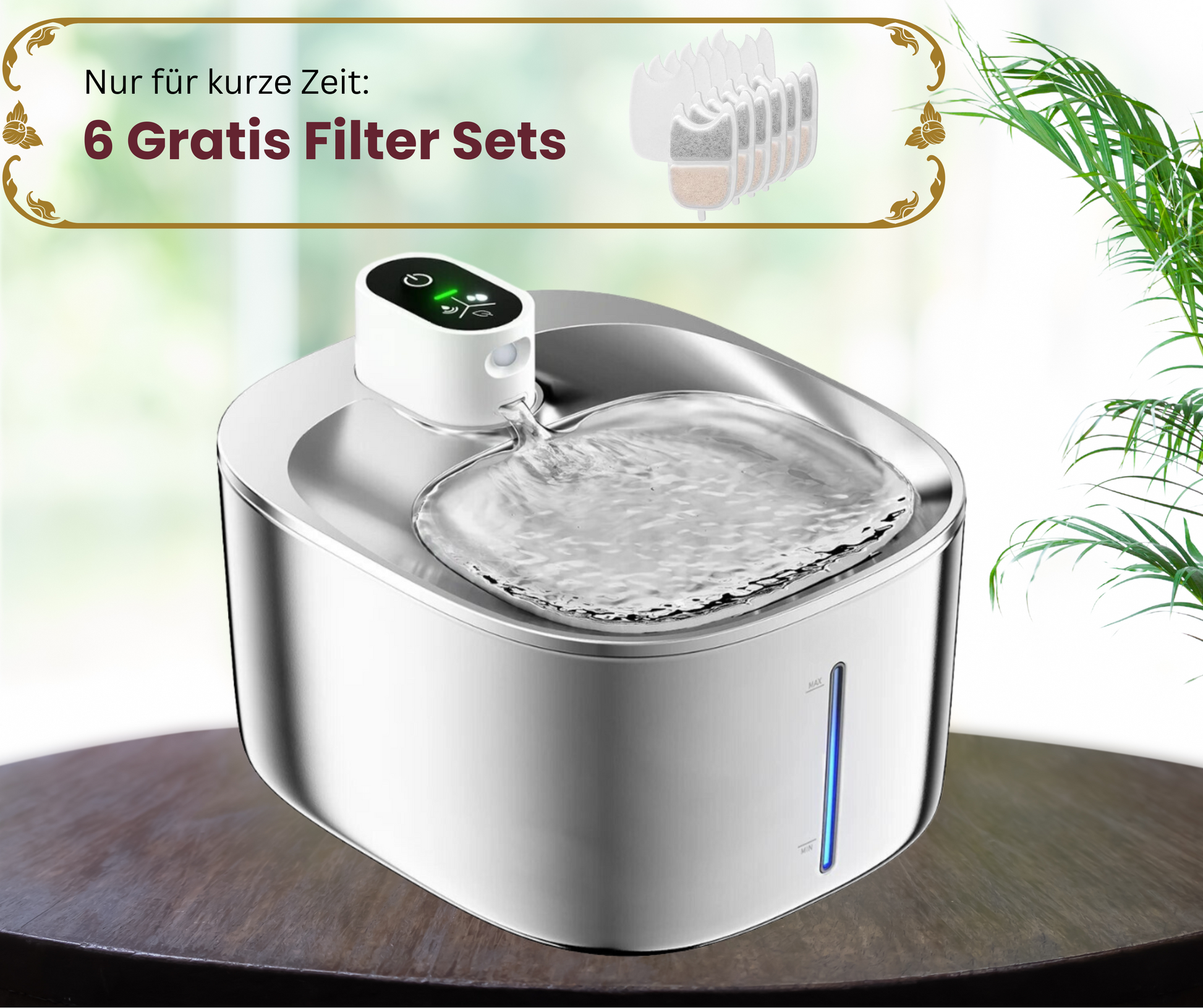 Zu wenig Wasser kann bei Katzen zu Harnwegserkrankungen und Nierenversagen führen. Der FreshDrop Katzenbrunnen fördert das Trinken mit ständig frischem, sauberem Wasser. Leise und aus hygienischem Edelstahl sorgt er für gesunde Hydration und weniger Bakterien – für das Wohl Ihrer Katze.